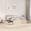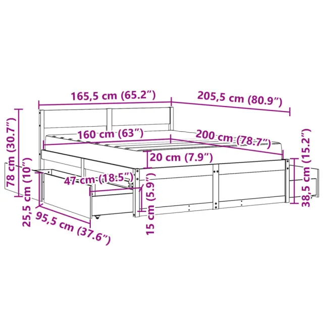 Ta postelja preproste in brezčasne oblike bo resnično praktičen in dekorativen dodatek za vašo spalnico. Trdna borovina: Trdna borovina je čudovit naravni material. Borovina ima ravne vzorce, grče pa dajejo materialu njegov značilen, rustikalen videz.Trpežno blago: Blago zagotavlja preprost in čist videz, poleg tega pa je zračno in trpežno.Ležišče z žepkastimi vzmetmi: Ta vzmetnica z žepkastimi vzmetmi ima posamezne žepkaste vzmeti, ki delujejo neodvisno in zagotavljajo prilagojeno podporo, saj se odzivajo le na pritisk na posameznem območju. Takšna zasnova preprečuje, da bi se ležišče "zvijalo skupaj", in zmanjšuje prenos gibanja v primerjavi s tradicionalnimi ležišči z odprtimi vzmetmi. Vsaka žepkasta vzmet podpira telo posebej.Funkcija shranjevanja: Priloženi posteljni predali nudijo dovolj prostora za shranjevanje potrebščin, da bo soba čista in urejena.Letvice za optimalno podporo: Okvir postelje je opremljen z letvicami, ki zagotavljajo osnovno podporo in zračnost vašega ležišča. Dobro je vedeti:Zaradi higienskih razlogov vzmetnice ni mogoče vrniti po odstranitvi ali odprtju embalaže.Potrebno sestavljanje: DaPosteljni okvir:Material: Trdna borovina (neobdelana)Dimenzije: 205,5 x 165,5 x 78 cm (D x Š x V)Dimenzije predalov: 95,5 x 47 x 25,5 cm (Š x G x V)Vzmetnica:Barva: Bela in svetlo sivaMaterial prevleke: Tkanina (100 % poliester)Material polnila: Žepkaste vzmeti, penaTrdnost: SrednjaDimenzije: 160 x 200 x 20 cm (Š x D x V) Paket vsebuje:1 x Posteljni okvir1 x Vzmetnica4 x Posteljni predal 3281892