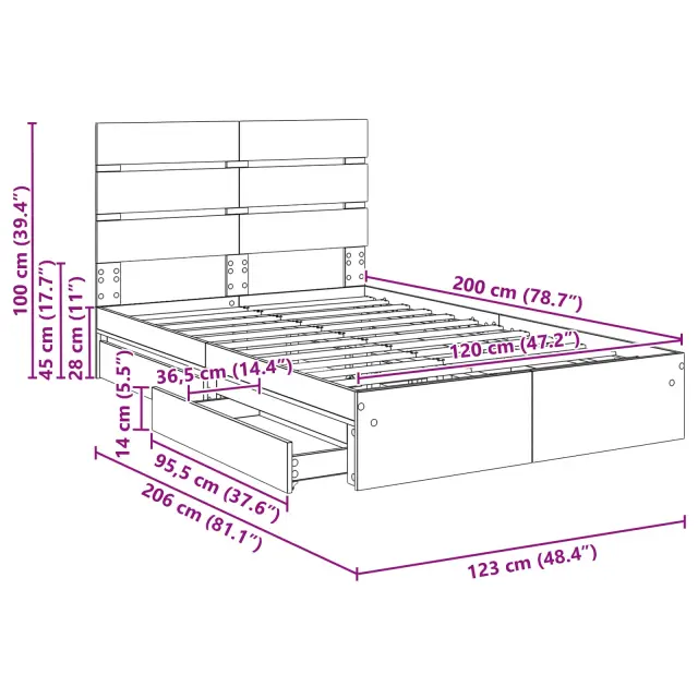 vidaXL Postelja s shranjevanjem Bela 120 x 200 cm Konstruiran les