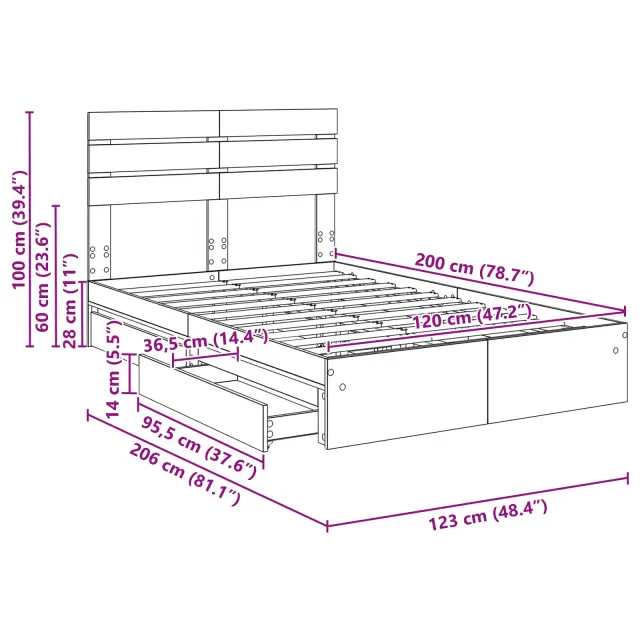 vidaXL Postelja s shranjevanjem Bela 120 x 200 cm Konstruiran les