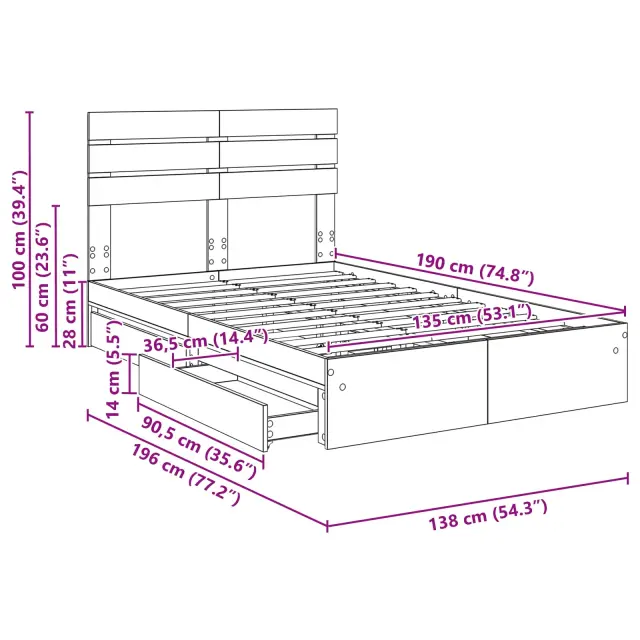 vidaXL Postelja s shranjevanjem Bela 135 x 190 cm Konstruiran les