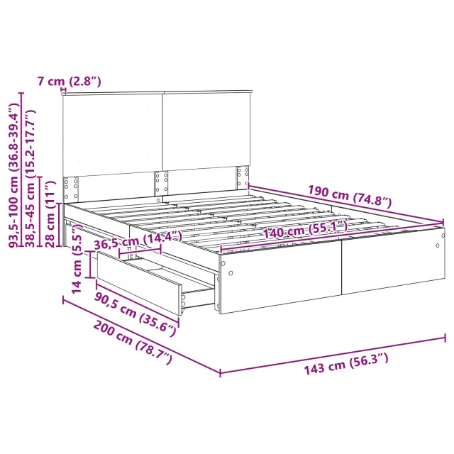 vidaXL Postelja s shranjevanjem Bela 140 x 190 cm Konstruiran les