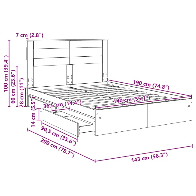 vidaXL Postelja s shranjevanjem Bela 140 x 190 cm Konstruiran les