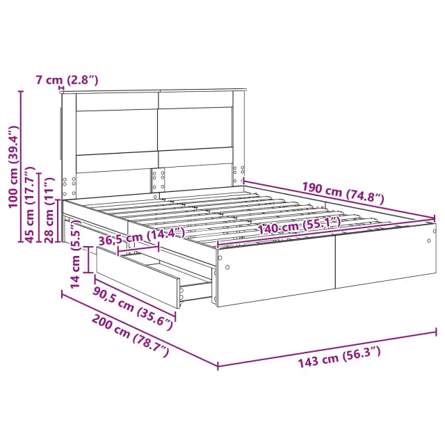 Ta posteljski okvir za shranjevanje je praktičen dodatek vsaki spalnici. Zasnovana je v modernem slogu, s čistimi linijami in minimalnim okrasjem, kar odlično pristoji sodobnim prostorom. Njena pravokotna oblika pa ji daje eleganten videz, in inženirski les nudi stabilnost. Vgrajeno shranjevanje je super za tiste, ki potrebujete dodaten prostor, in hkrati združuje obliko in funkcijo.