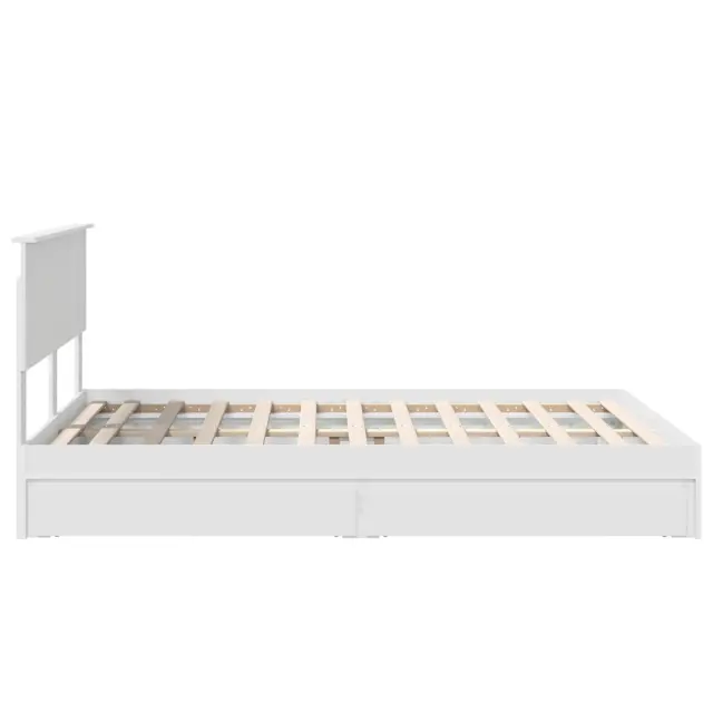vidaXL Postelja s shranjevanjem Bela 140 x 200 cm Konstruiran les