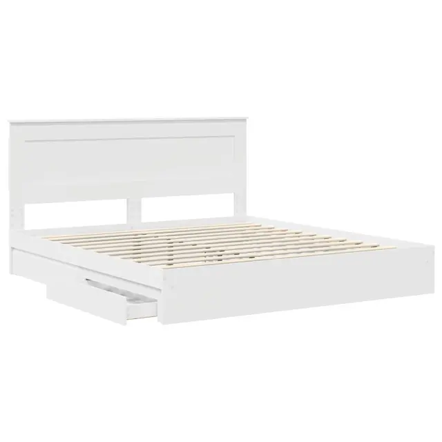 vidaXL Postelja s shranjevanjem Bela 200 x 200 cm Konstruiran les