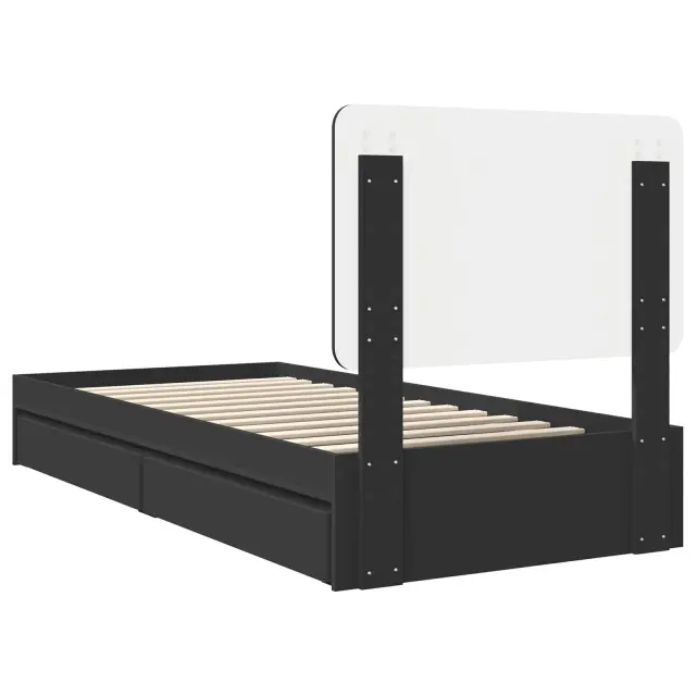 vidaXL Postelja s shranjevanjem Črna 100 x 200 cm Konstruiran les