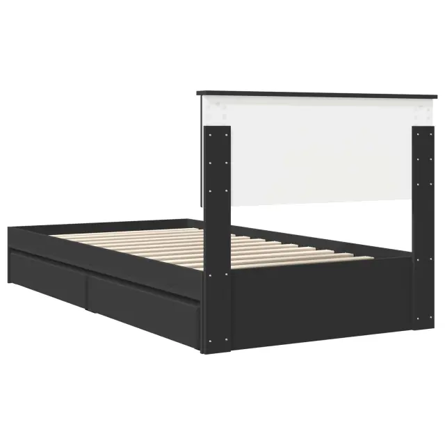 vidaXL Postelja s shranjevanjem Črna 100 x 200 cm Konstruiran les