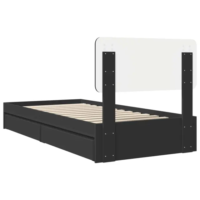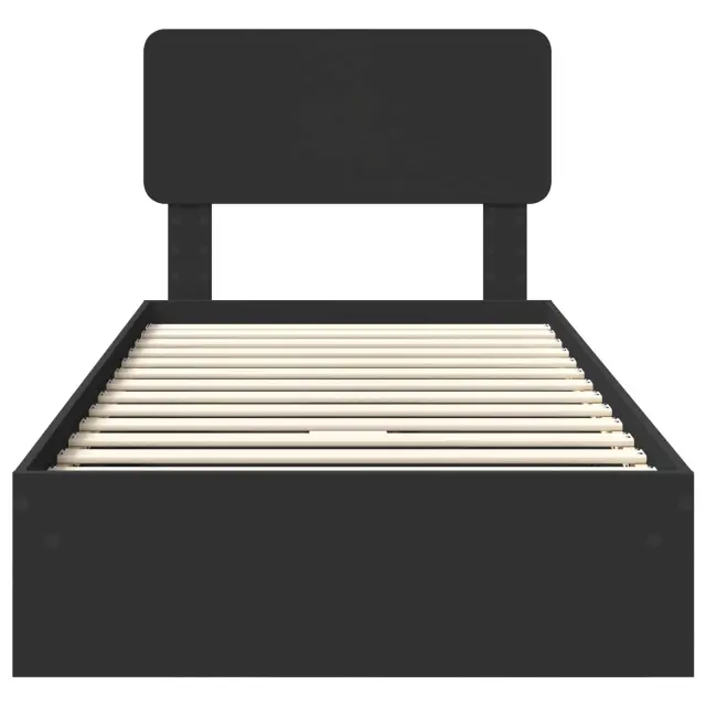 vidaXL Postelja s shranjevanjem Črna 100 x 200 cm Konstruiran les