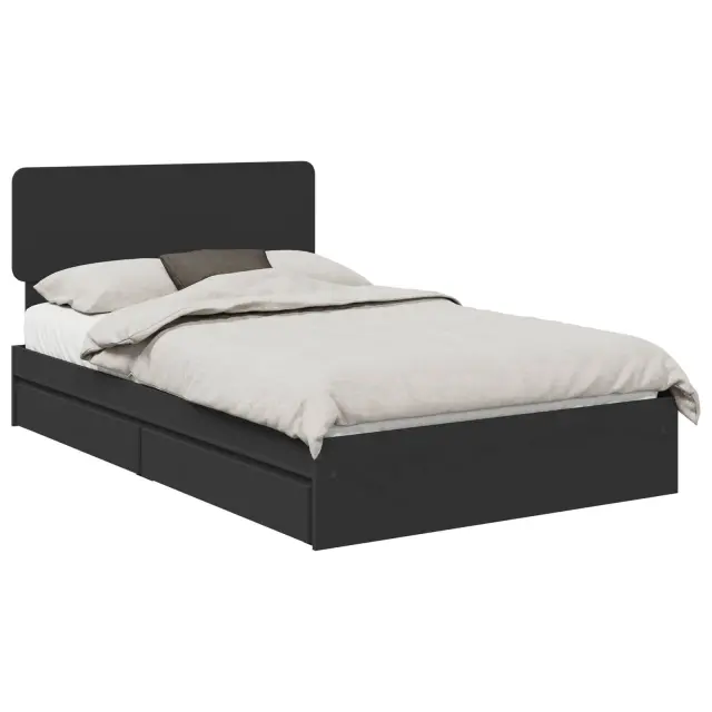 vidaXL Postelja s shranjevanjem Črna 135 x 190 cm Konstruiran les