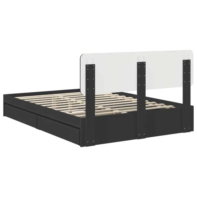 vidaXL Postelja s shranjevanjem Črna 140 x 190 cm Konstruiran les