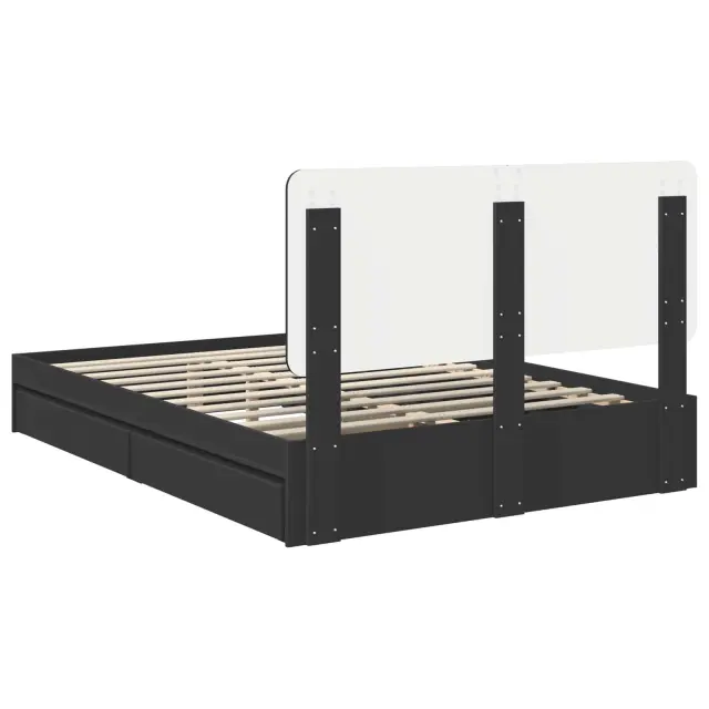 vidaXL Postelja s shranjevanjem Črna 150 x 200 cm Konstruiran les