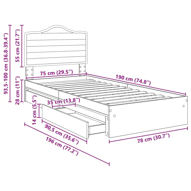 • Material inženirskega lesa Okvir postelje, naslonjalo in predali so iz kvalitetnega inženirskega lesa. Ta material ima gladek zaključek in preprečuje upogibanje, kar zagotavlja trdno in zanesljivo podlago. Sofisticirana tekstura dodaja sodoben pridih vsakemu spalnemu prostoru.