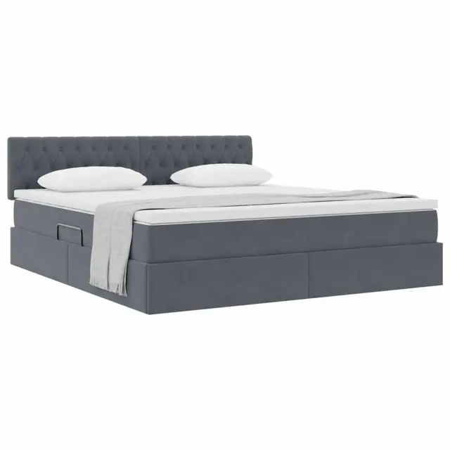 vidaXL Postelja s shranjevanjem Temno siva 160 x 200 cm Žamet