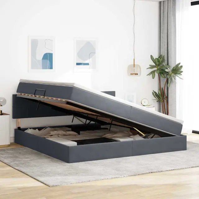 vidaXL Postelja s shranjevanjem Temno siva 200 x 200 cm Žamet