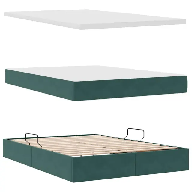 vidaXL Postelja s shranjevanjem Temno zelena 140 x 190 cm Žamet