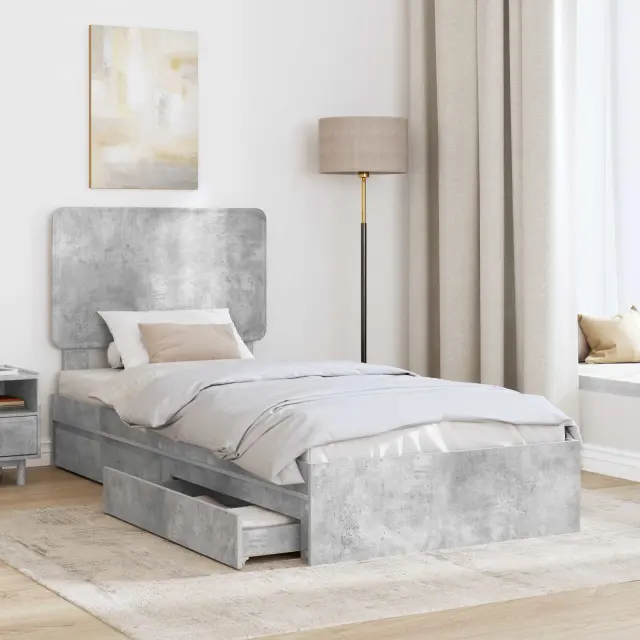 vidaXL Postelja s shranjevanjem z vzglavjem Betonsko siva 90 x 190 cm