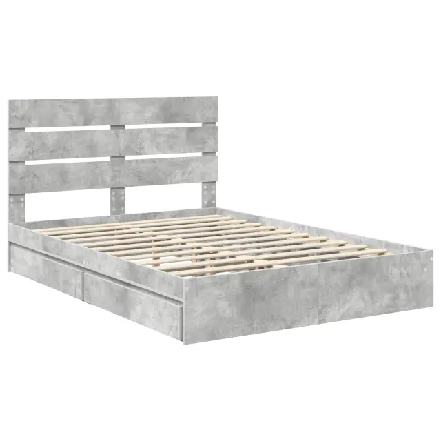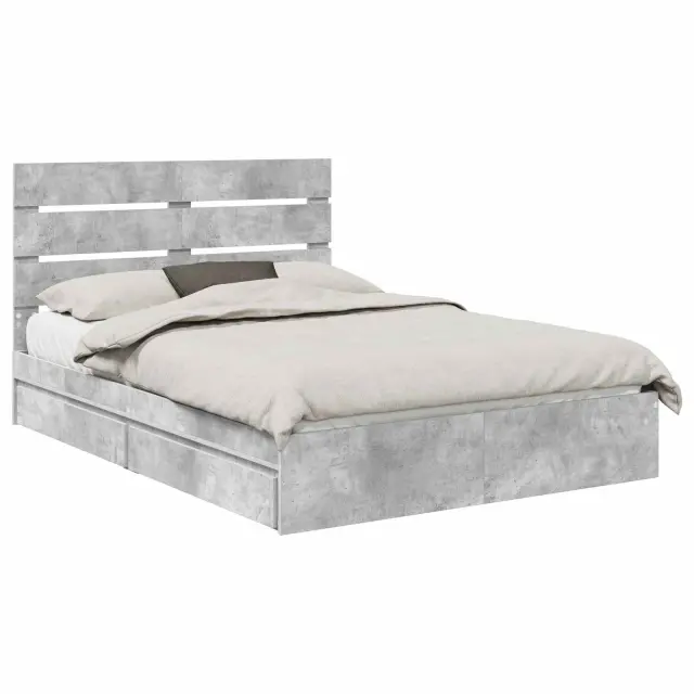 vidaXL Postelja s shranjevanjem z vzglavjem Betonsko siva 150 x 200 cm