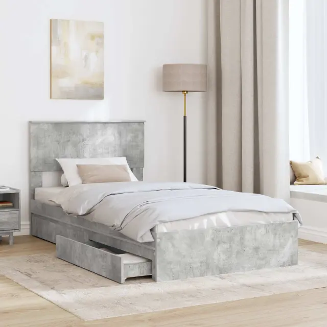 vidaXL Postelja s shranjevanjem z vzglavjem Betonsko siva 100 x 200 cm