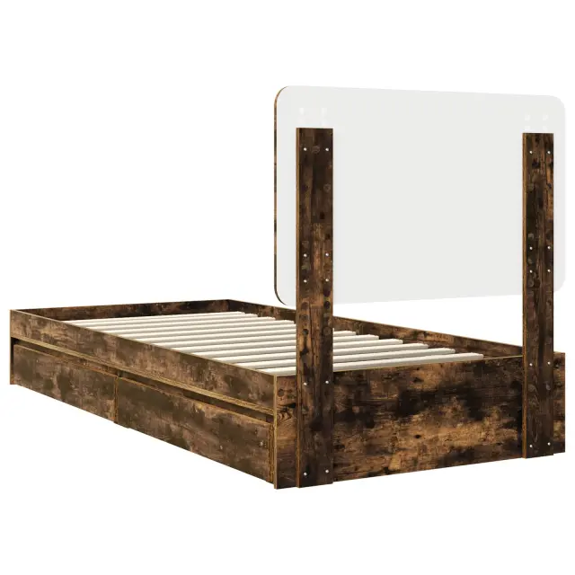 vidaXL Postelja s shranjevanjem z vzglavjem Dimljeni oreh 90 x 200 cm