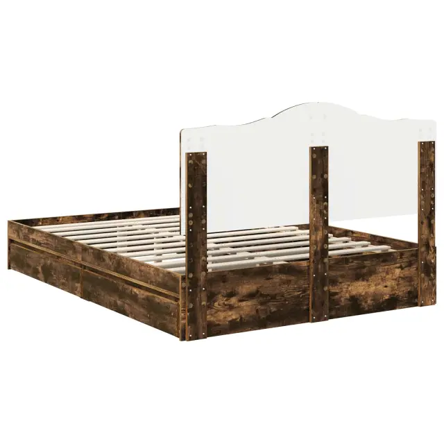 vidaXL Postelja s shranjevanjem z vzglavjem Dimljeni oreh 160 x 200 cm