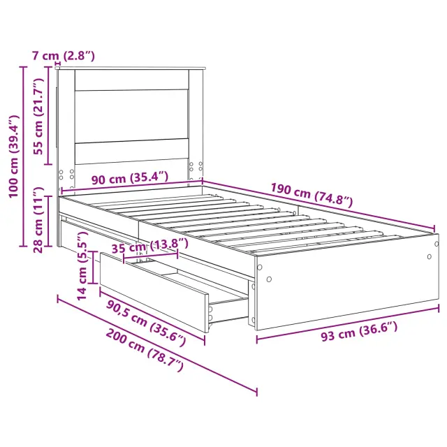 Ta posteljski okvir za shranjevanje je praktičen dodatek vsaki spalnici. Zasnovana je v modernem slogu, s čistimi linijami in minimalnim okrasjem, kar odlično pristoji sodobnim prostorom. Njena pravokotna oblika pa ji daje eleganten videz, in inženirski les nudi stabilnost. Vgrajeno shranjevanje je super za tiste, ki potrebujete dodaten prostor, in hkrati združuje obliko in funkcijo.