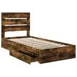 vidaXL Postelja s shranjevanjem z vzglavjem Dimljeni oreh 90 x 190 cm