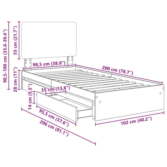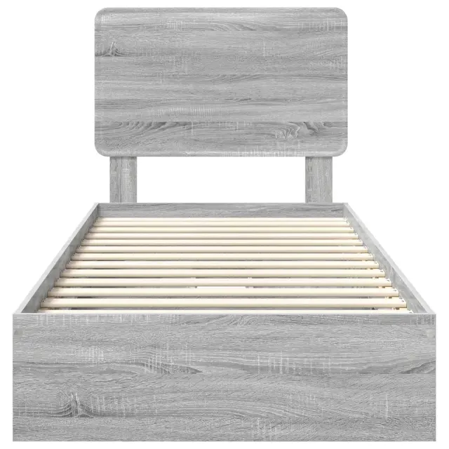 vidaXL Postelja s shranjevanjem z vzglavjem Siva Sonoma 100 x 200 cm