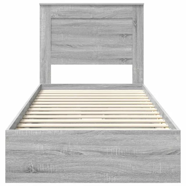 vidaXL Postelja s shranjevanjem z vzglavjem Siva Sonoma 100 x 200 cm