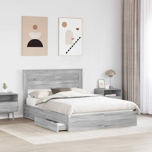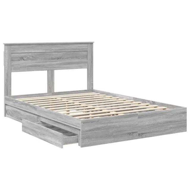 vidaXL Postelja s shranjevanjem z vzglavjem Siva Sonoma 160 x 200 cm