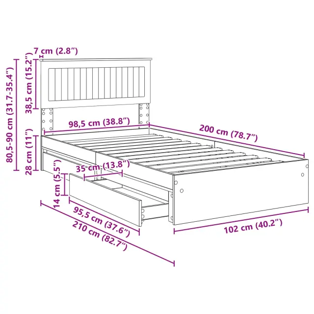 vidaXL Postelja s shranjevanjem z vzglavjem Siva Sonoma 100 x 200 cm