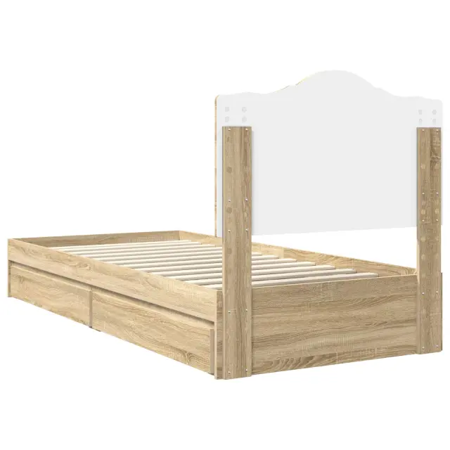 vidaXL Postelja s shranjevanjem z vzglavjem Sonoma hrast 90 x 190 cm