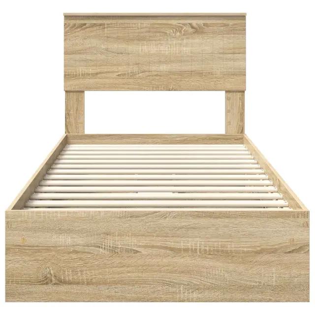 vidaXL Postelja s shranjevanjem z vzglavjem Sonoma hrast 90 x 190 cm