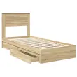 vidaXL Postelja s shranjevanjem z vzglavjem Sonoma hrast 100 x 200 cm