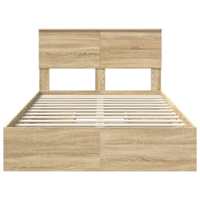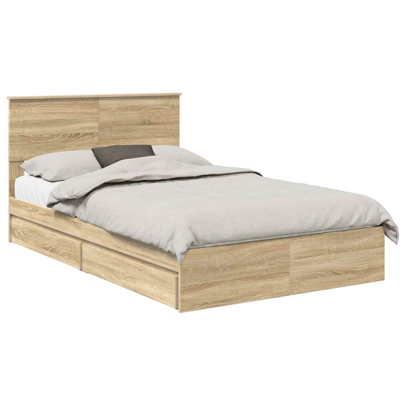 vidaXL Postelja s shranjevanjem z vzglavjem Sonoma hrast 120 x 200 cm