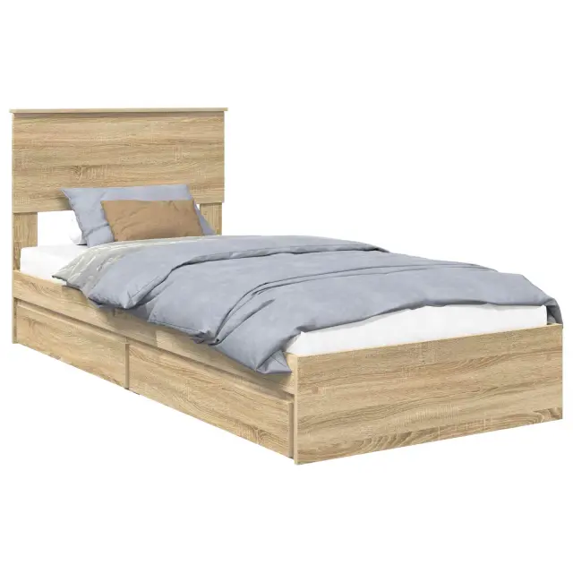 vidaXL Postelja s shranjevanjem z vzglavjem Sonoma hrast 90 x 190 cm