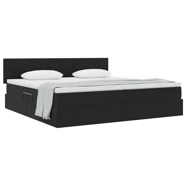vidaXL Postelja s shranjevanjem z vzmetnico Črna 200 x 200 cm Žamet