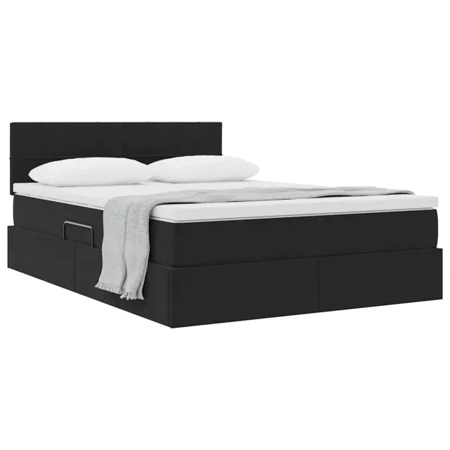 vidaXL Postelja s shranjevanjem z vzmetnico Črna 140 x 200 cm Žamet