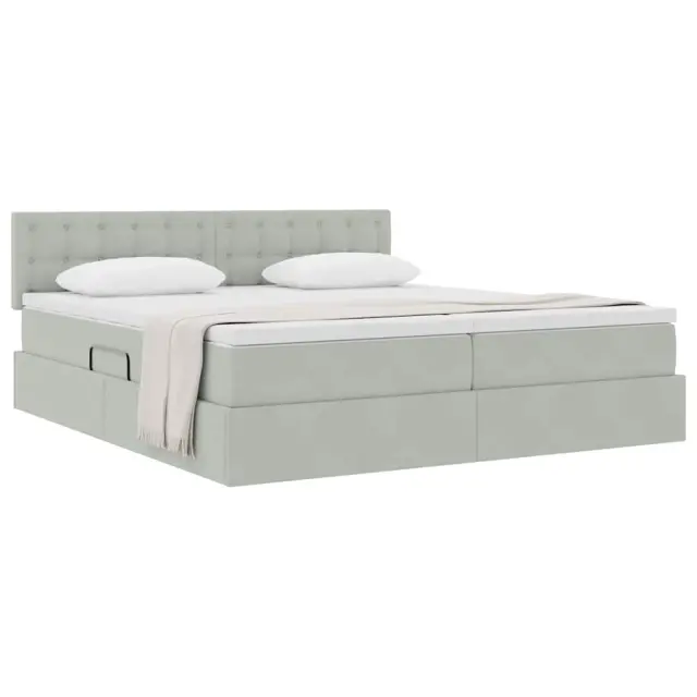 vidaXL Postelja s shranjevanjem z vzmetnico Svetlo siva 90 x 200 cm