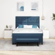 Ta postelja s škatasto vzmetjo združuje moderni stil s praktičnostjo, kar jo naredi odličen dodatek v vsako spalnico za odrasle. Izstopajoča modra površina in trdne lesene noge ustvarjajo prijetno vzdušje, zagotavljajoč udobje in stil med spanjem.