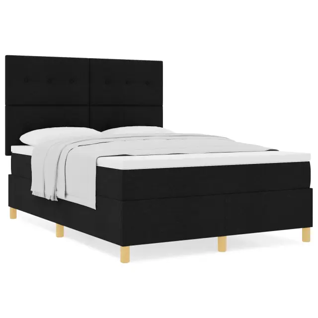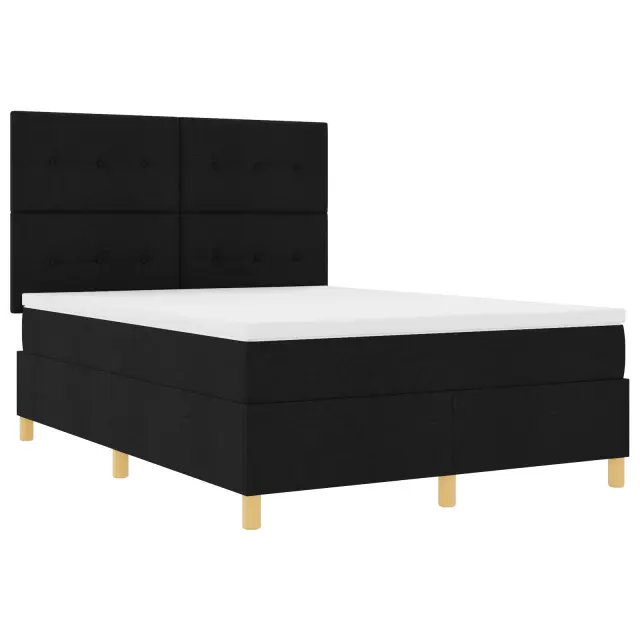 Ta postelja s škatlastim dnom z vzmetnico je ključen kos za tvojo spalnico, zasnovana za vrhunsko udobje in eleganco. S svojo moderno črno tkanino prinaša praktičnost in stil ter tvojemu prostoru daje vabljiv videz.