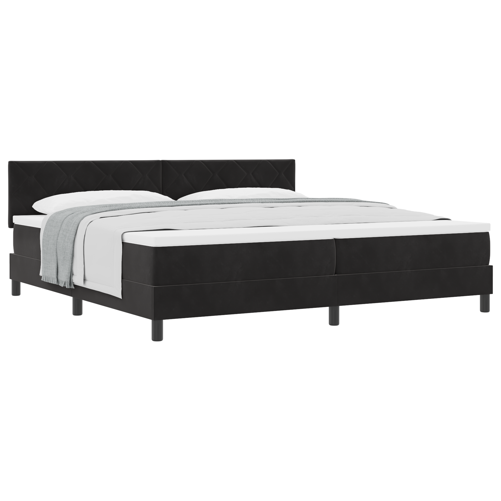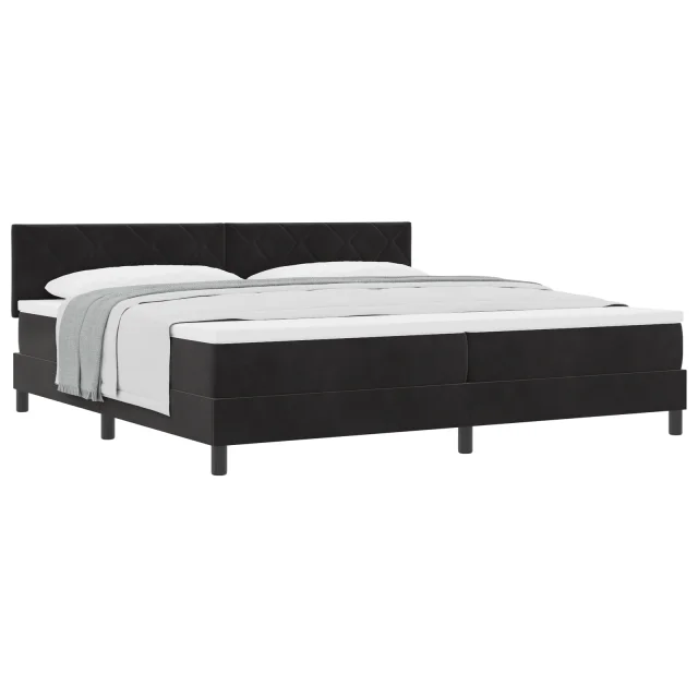 Ta postelja s škatlastimi vzmetmi, s svojim elegantnim črnim žametnim zaključkom, odlično združuje udobje in slog, ter spremeni vzdušje vsake spalnice. Pri velikosti 100x200 cm je odlična za enega, obeta mirne noči in osvežujoče jutra. Njen šik dizajn izboljša videz sobe in vabi k sprostitvi.