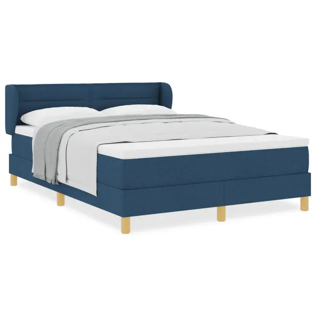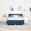 Ta postelja s škatlastimi vzmetmi in vzmetnico se ponaša z udobjem in stilom. Zdi se super z bogato modro tkanino in čistim modernim videzom, kar jo naredi odlično izbiro za vsak trendovski prostor.