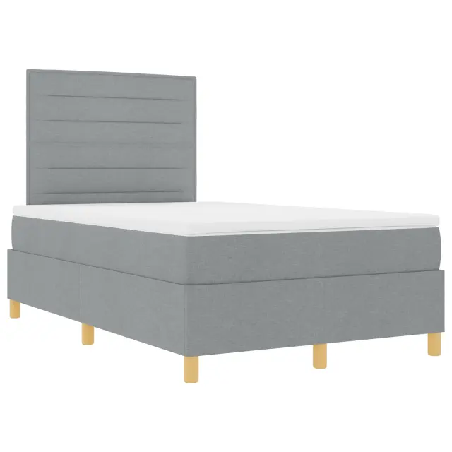 Ta postelja s škatlasto vzmetnico združuje moderen slog s praktičnim oblikovanjem, da tvojo spalnico dvigne na višji nivo. Svetlo siva tkanina in lesene noge ji dajo eleganten videz.