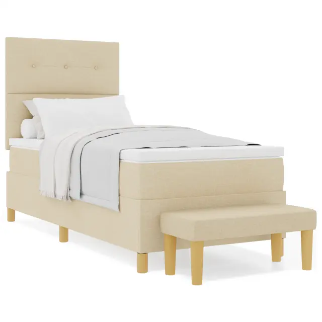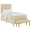 Ta postelja s škatlasto vzmetnico je vse o udobju in slogu. Super izbira, če želiš osvežiti svojo spalnico. Trendovsko kremno oblazinjenje in trden leseni okvir ne ustvarjata samo postelje, ampak pravo zvezdo, ki prinaša eleganco v vsak prostor, super za enega odraslega.
