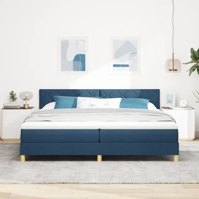 Ta postelja s škatličnim vzmetenjem je super kombinacija stila in udobja. S kul modro poliester tkanino se prilega vsakemu prostoru, kar pomeni, da je prava izbira za odrasle, ki iščejo eleganco in udobje pri spanju.