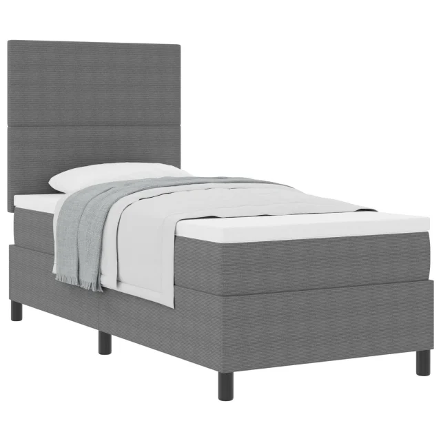 Ta komplet postelje s škatlico združuje sodoben dizajn in prijetne lastnosti, narejen za posamezne uporabnike. Kombinacija kordurovnega blaga in trdnega lesenega okvira daje vsakemu prostoru stilizirano in praktično noto.