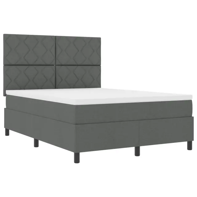 vidaXL Postelja s škatlo z vzmetnico in LED Temno siva 140x200 cm Tkanina