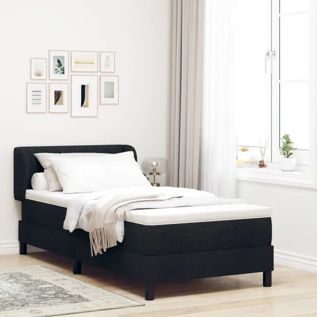 vidaXL Postelja s vzmetnico Črna 80x200 cm Tkanina