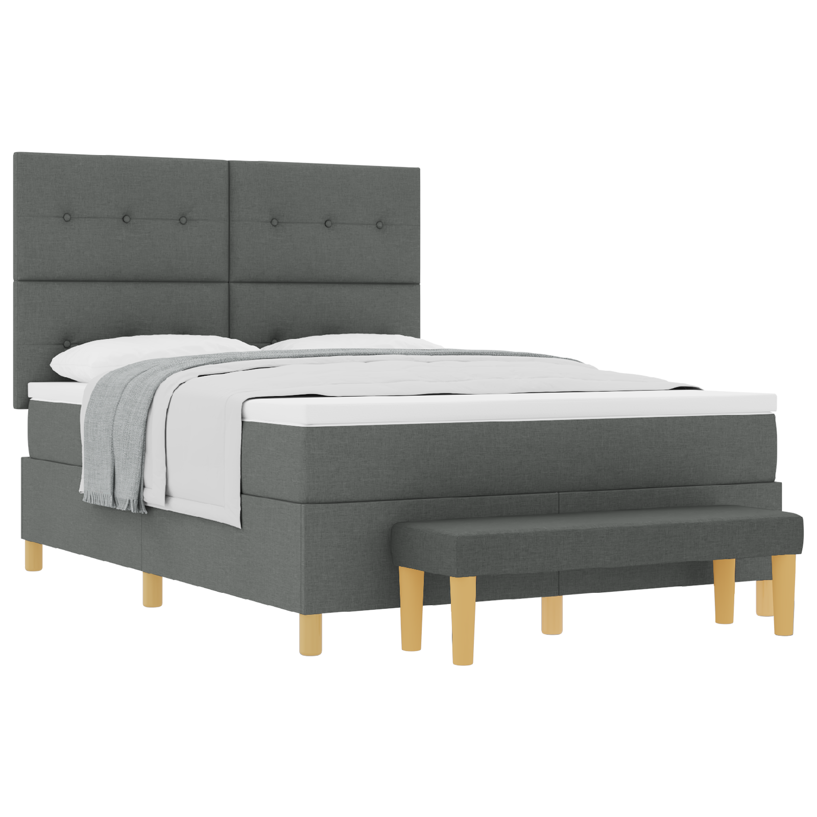 Ta moderna temno siva obložena postelja združuje stil in udobje. S svojo elegantno zasnovo in trdno konstrukcijo bo izboljšala izgled tvoje spalnice in ustvarila prijetno vzdušje, ki ga bodo vsi oboževali.