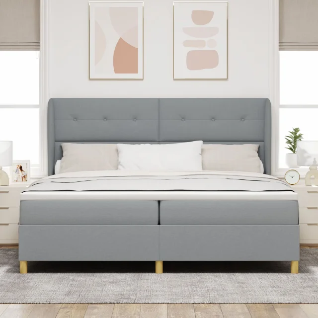 vidaXL Postelja s vzmetnico v svetlo sivi barvi, 200x200 cm, Tkanina